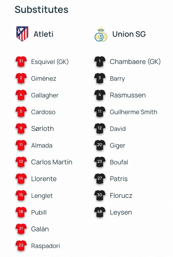北京时间11月5日4点,欧冠联赛阶段,马德里竞技对阵圣吉罗斯联合,赛前公布首发名单。