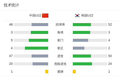 第70分钟,韩国U22球员禁区内倒地后投诉,主裁判未予理睬