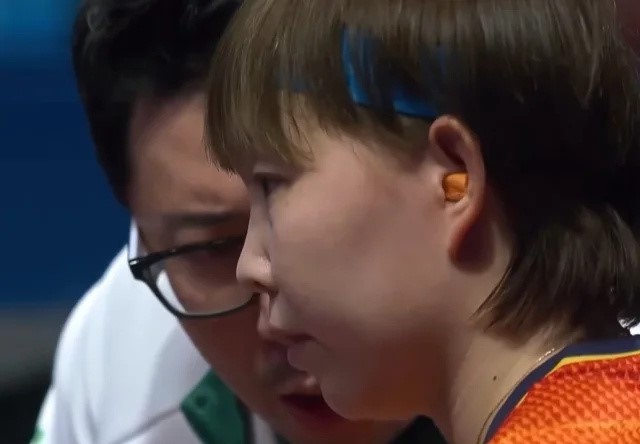 11月15日,全运会女单半决赛,孙颖莎4-1战胜朱雨玲,决赛对阵王曼昱。比赛中,朱雨玲在局间休息时佩戴耳塞。